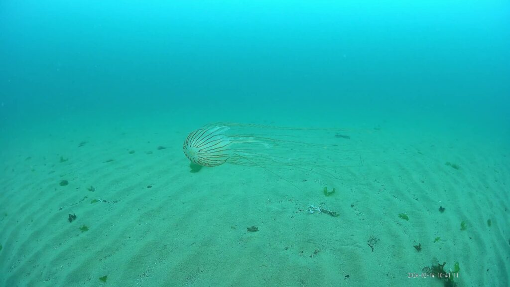 海底には砂丘状の地形が確認され、魚やクラゲなどの生物も観察されるなど、砂浜環境と海洋生態系の関係を考察するうえで貴重な映像データを取得することができました。